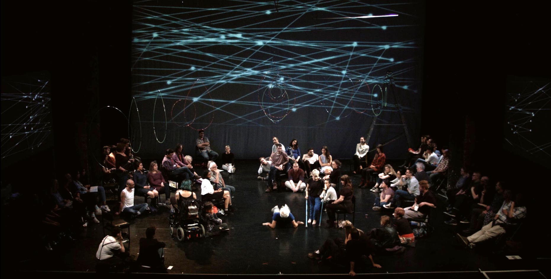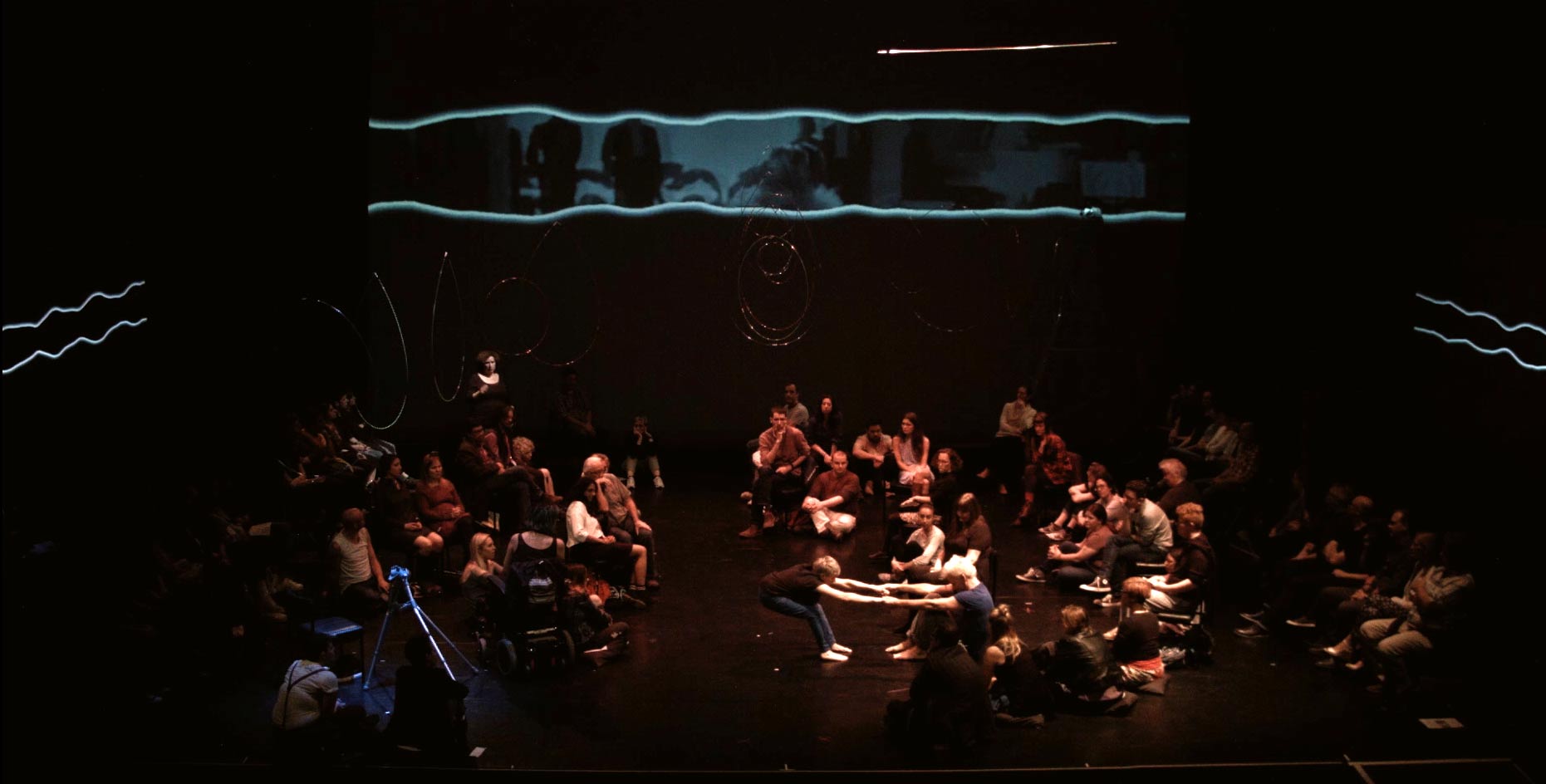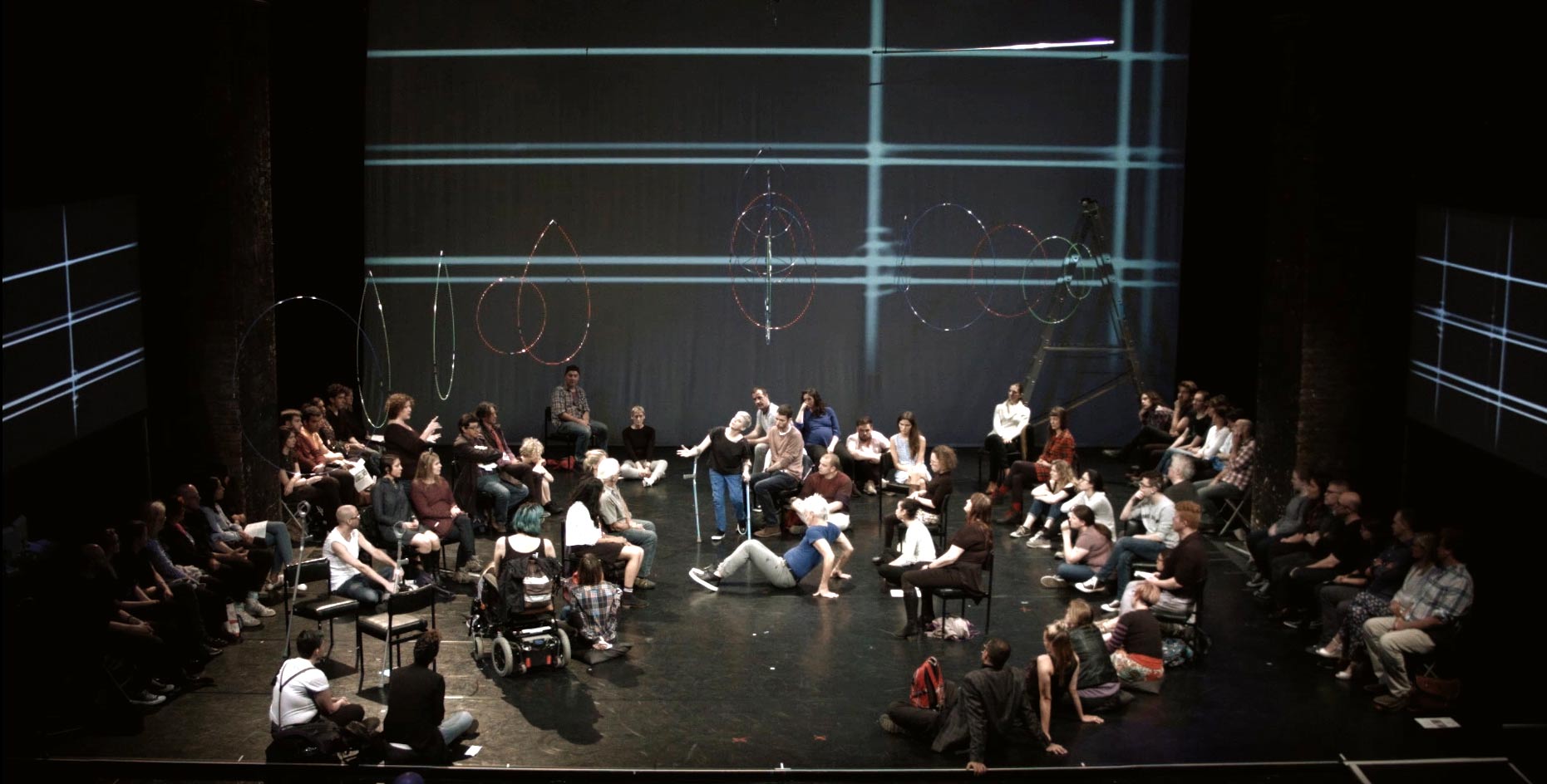 The Way You Look (At Me) Tonight is a social sculpture—a sensory journey, for two performers and audience. Dancing, singing, telling stories and asking questions, leading UK disabled artist Claire Cunningham and international choreographer and performer Jess Curtis, combine performance, original music, and video to wrestle (sometimes literally) with important questions about our habits and practices of perceiving each other and the world.