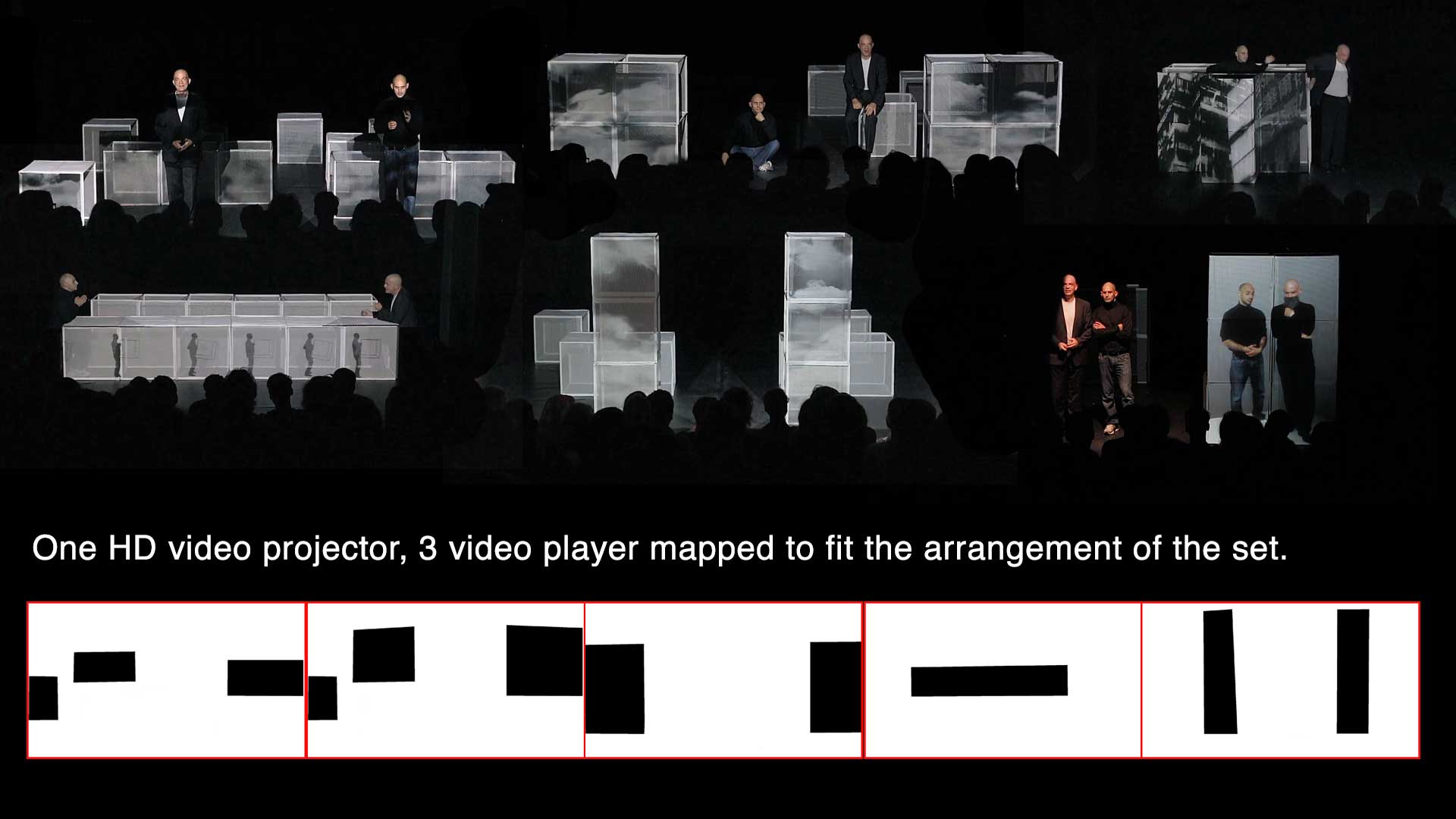 Parcour-theater performance reflecting the architecture that is featured in the fairy tales by the Brothers Grimm. The video documents the full "guided tour" through an exhibition that gradually becomes more and more immersive, using more and more media technology. The tour guides increasingly transform into characters from a fairy tale.