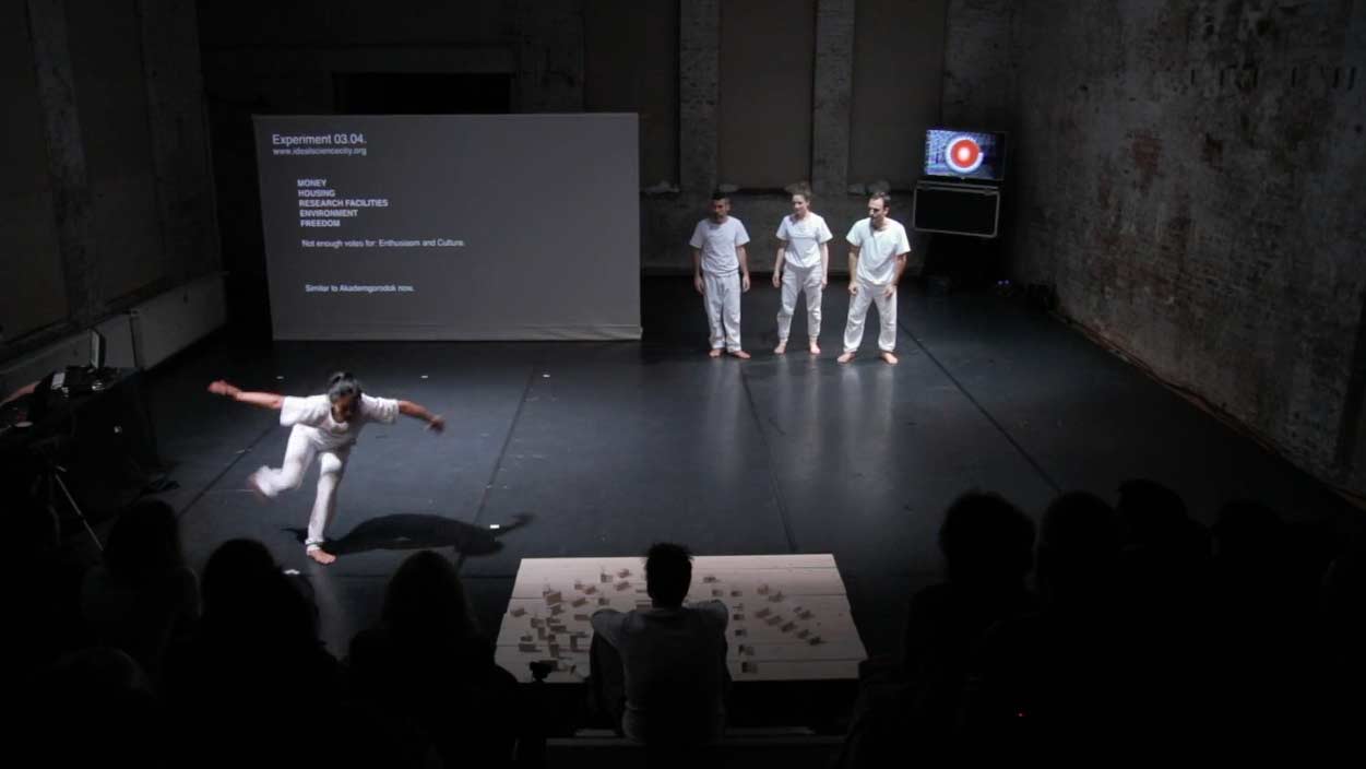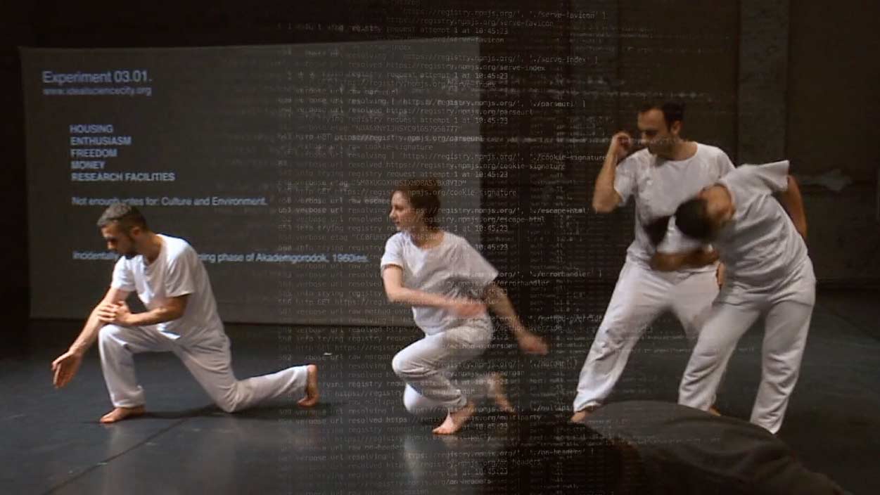 Science and technology are meant to improve the world. But how and where do people conduct their research beset? In a metropolis or at a remote lab at the end of the world? In South-Siberia there is a science city called Akademgorodok since the late 50ies, a very successfull place with particle accelerators, fusion reactors, and, as of recently, Start-Ups and IT companies. What happens to a utopian dream of an ideal science city in the age of globalization - the era of migrating „high-potentials“ - the so called brain-drain? post theater set up an A.I., an artificial intelligence, that organizes the evening and asks contemporary dancers to feed input.