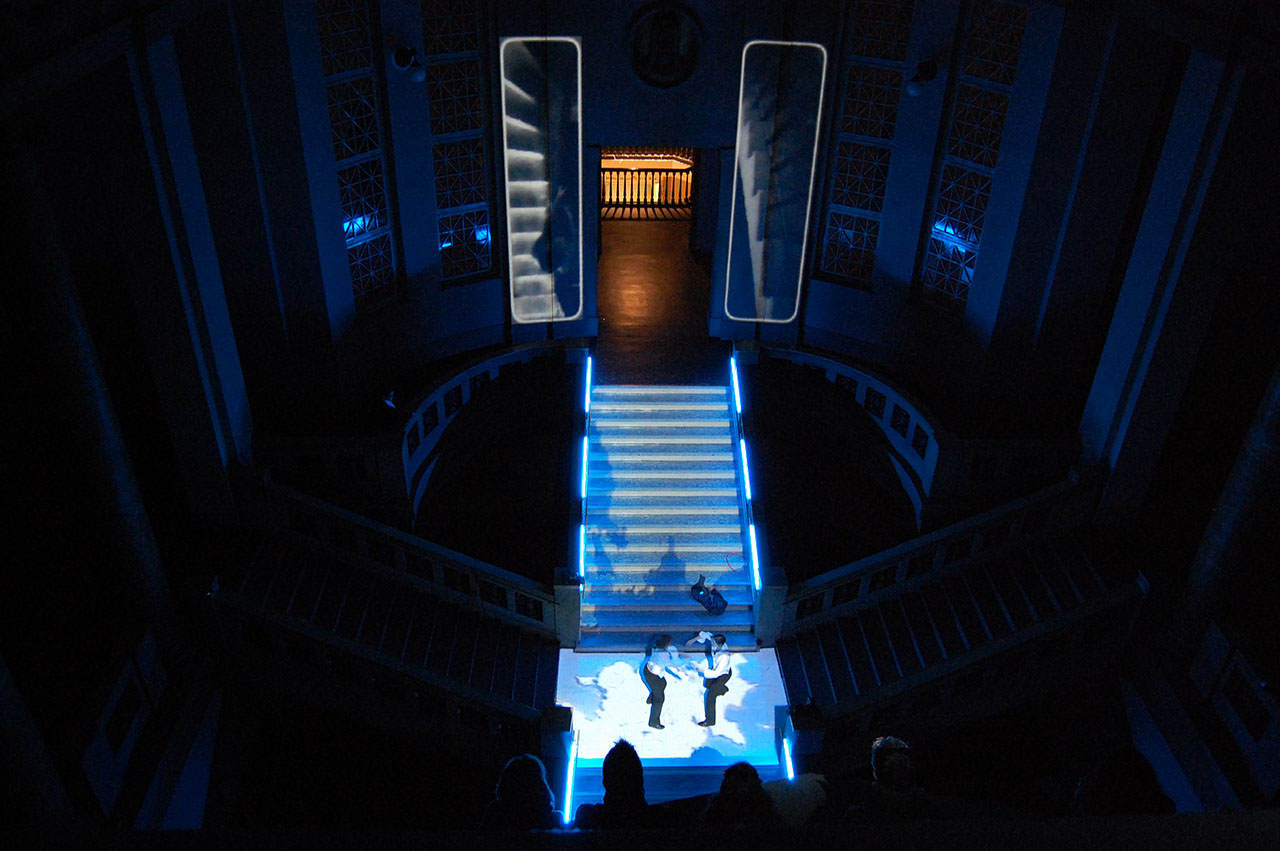 Performance über die Wechselbeziehungen von Utopischem – Sehnsüchtigem – MenschMaschinenSystemen – in Zeiten des Digitalen. Für Schauspieler, Tänzer, Performer, Musiker, Videographen, Raum und Klang tatraum projekte schmidt feiert sein 15-jähriges Bestehen in diesem Jahr mit dem Abschluss eines auf drei Jahre angelegten Projektes, dass die Wechselbeziehung zwischen einer immer stärkeren Digitalisierung der Lebenswelt und den (manchmal) archaisch anmutenden menschlichen Verhaltensweisen untersucht. Teil 3 thematisiert die Wechselbeziehungen von Utopischem – Sehnsüchtigem – MenschMaschinenSystemen –in Zeiten des Digitalen. Er ist gleichzeitig die 15. Inszenierung der tatraum projekte.