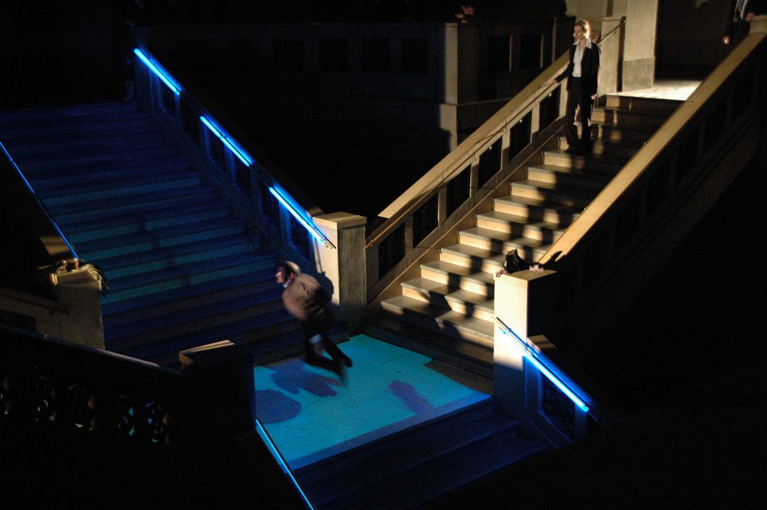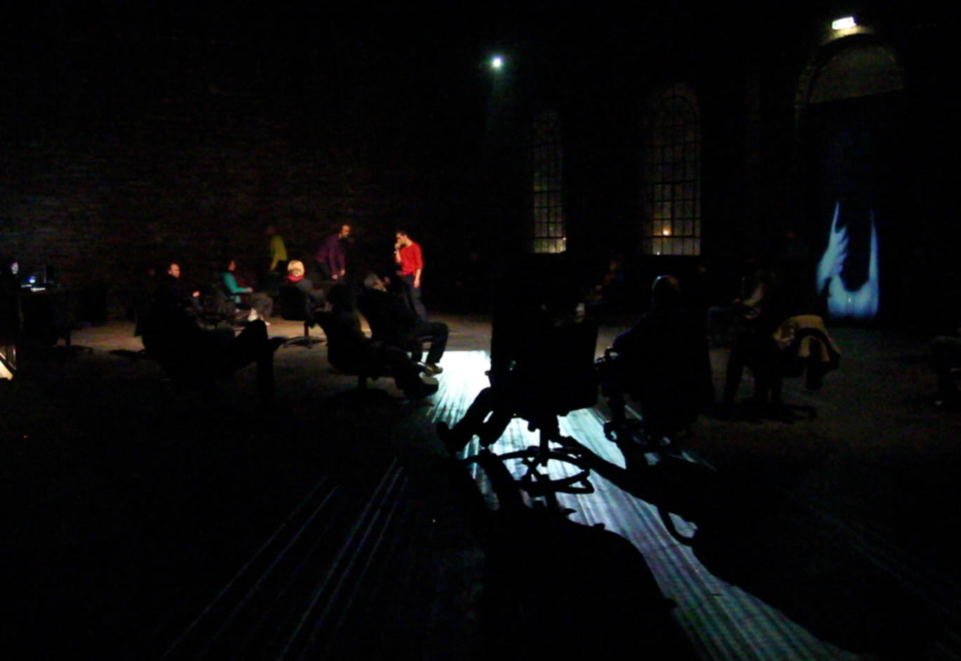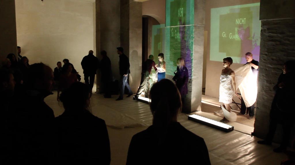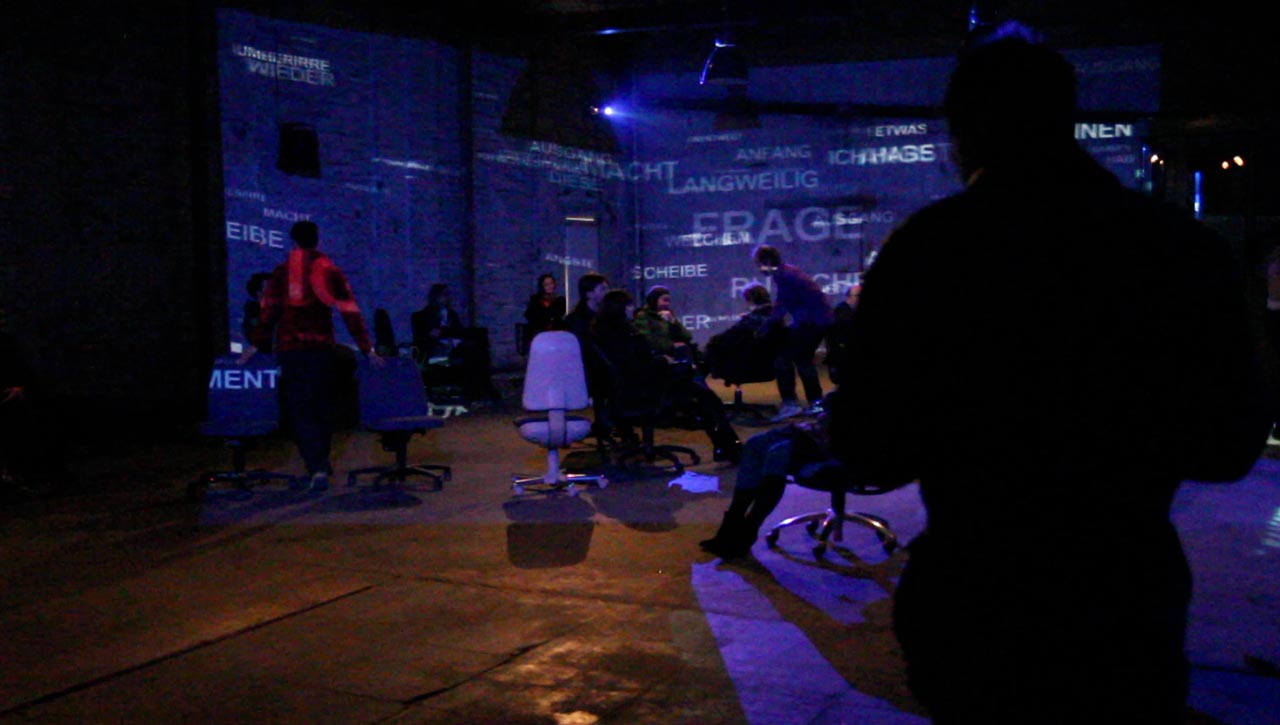 Performance für Tänzer, Schauspieler, Performer, Musiker, Videografen, KlangRaum und Amtsgericht. Verortungen in einem Unwirklich-/Wirklichkeisraum: real, politisch, paranoid, verschwörerisch, …