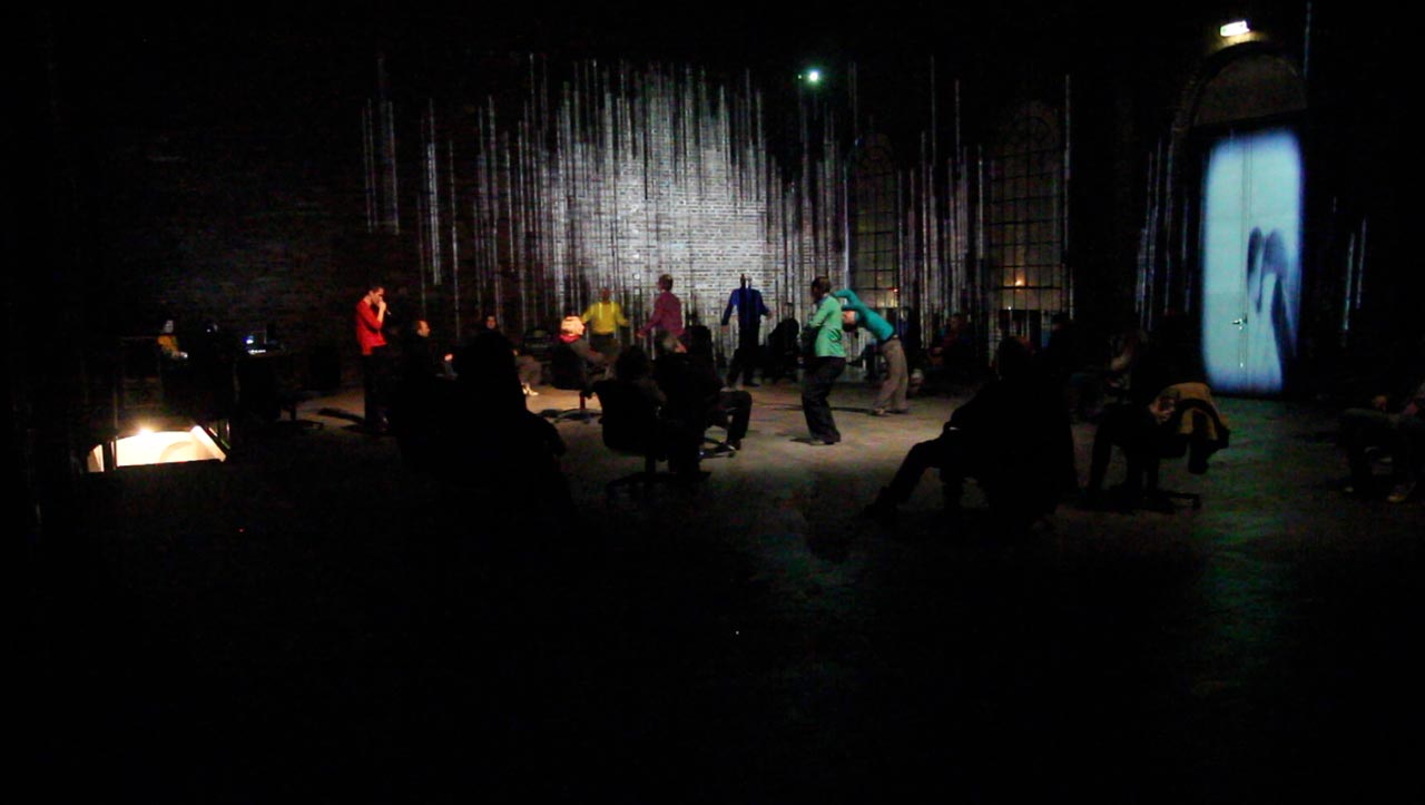 vom Hirn, vom Bewusstsein, von Handlungsstrategien und von ungewissem Wissen. Eine performative Versuchsanordnung im Spannungsfeld von Science + Fiktion. Für Tänzer, Performer, Musiker, Videografen, Klang-Raum, Neurowissenschaften, bildgebende Verfahren und 10hoch 11 Nervenzellen mit einem Gesamtgewicht von ca. 1300gr (auf dem Weg in die Neurosociety)