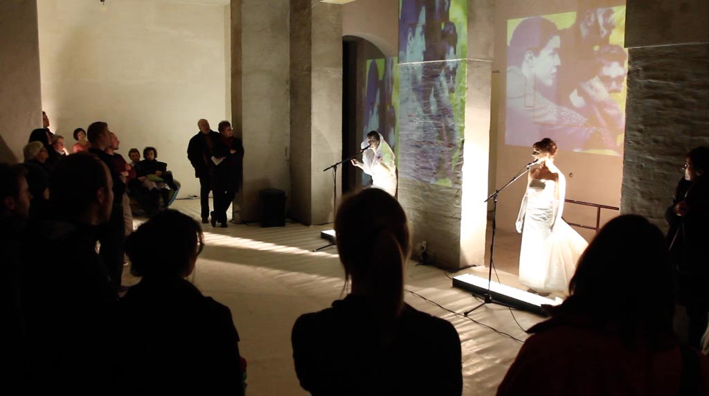 Von Überlappungen und Verschmelzungen von Politik / Entertainment / Pop / Star / DaSein. Ein performatives Geschehen. Über Verwerfungen und Inszenierungen des Lebendigen hinter der Oberfläche des Öffentlichen: Ihrem, Meinem, Unserem. Für Tänzer, Performer, Musiker, Videografen, Klang-Raum, publicity stills, Pillbox-Hüte, eine Baustelle und Camelot in Pastellfarben.